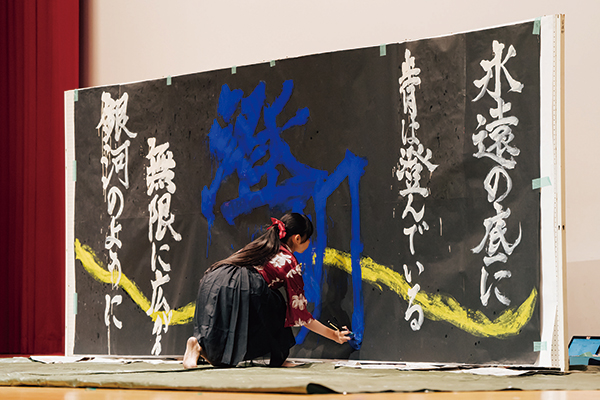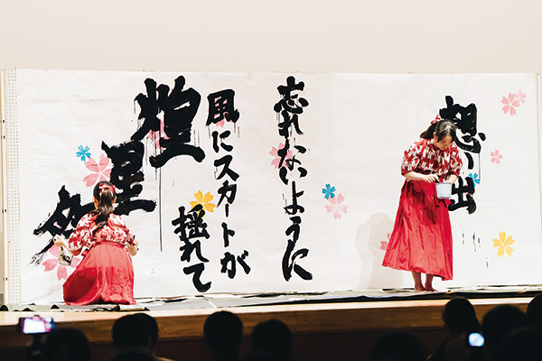 新入生歓迎会と文化祭では、書道パフォーマンスを披露します。