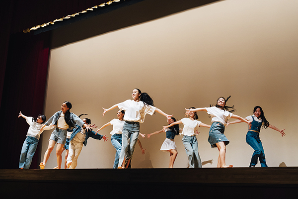 今回が初舞台となった中1のステージ。代々受け継がれているダンスをにこやかに踊る生徒たちが印象的です。