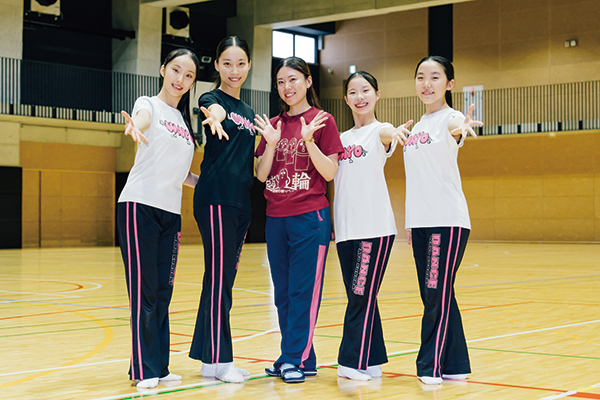 毎年夏に開催される全国大会での上位入賞をめざし、日々練習に励むダンス部。ダンスを愛する部員たちの熱い想いに応えるべく指導にあたっているのは、自身も5歳からダンスを始め、大学時代にはダンス学科を専攻されていた長谷川絵理先生です。