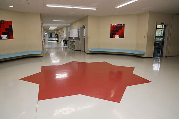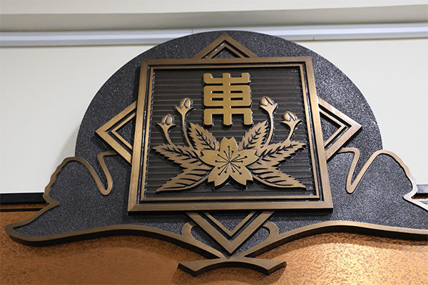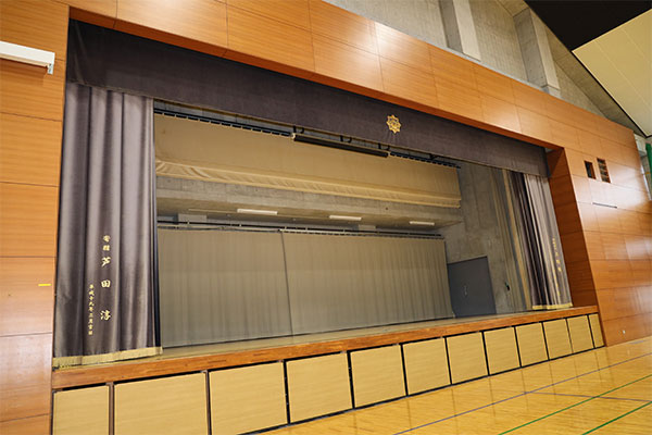 先生第1体育館の中に、ちょっとおもしろい緞帳があります。実はデザイナーの芦田淳さんに寄贈して頂いたものです。芦田さんも本校の卒業生でいらっしゃいます。