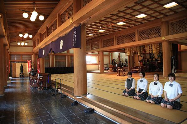 柴原先生傳通院をご案内します。こちらでは高3生が卒業式の前に「帰敬式」という儀式を行います。