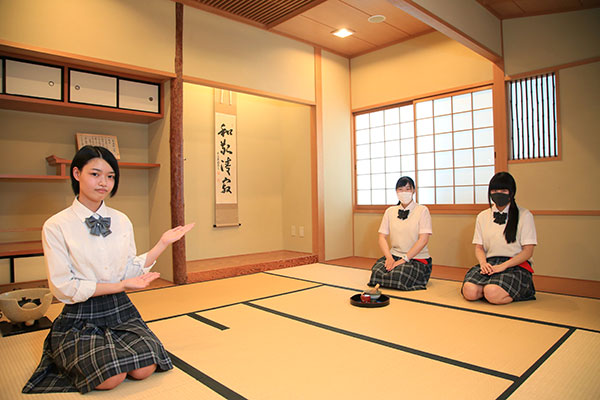 茶道部の先生こちらは茶道部が活動する茶室です。『なでしこ祭』のときに茶道部が和服を来てお点前を披露することもあります。