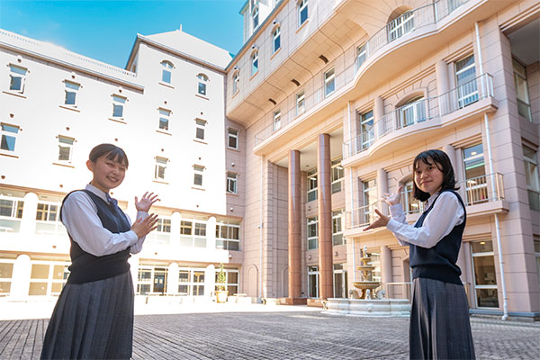 2021年に創立90周年を迎える江戸川女子高等学校。英国のお城をイメージした校舎には、アリーナやスタジオ、武道場として使用されるクラブハウスなど体育活動をサポートする施設や、書斎をイメージした自習室、オンライン英会話レッスンができる演習室など、多彩な教室があります。2022年には90周年を記念した西校舎が完成。来年度、この校舎で学ぶ高2生たちがキャンパスを案内してくれました。
