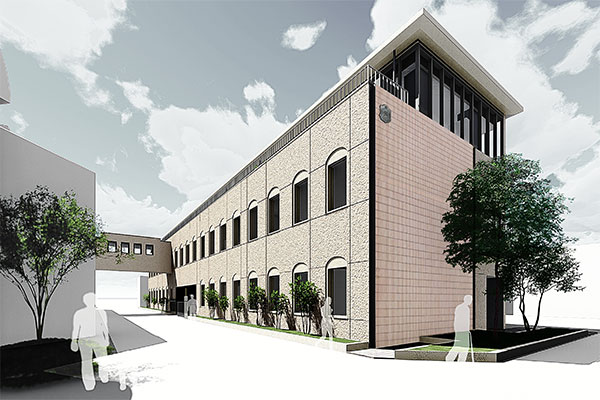 記者こんにちは。正面玄関の向かい側で、新校舎を建設中ですね。皆さんが来年、勉強する校舎ですか?