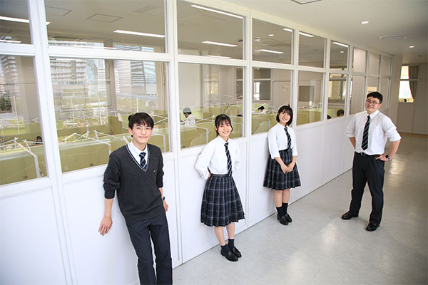 理系科目が好きで、理系の大学進学を考えている生徒たちのためにカスタマイズされた同校の施設・設備は、“学びが楽しくなるワンダーランド”。生徒の理系マインドを刺激する多彩な授業が行われ、また放課後の時間を楽しく演出する学びの空間を、4名のスクールサポーターに案内してもらいました。
