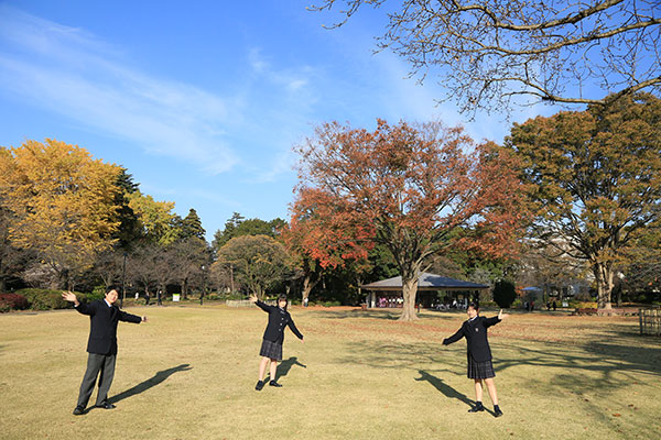川瀨さんこちらが中央広場です。近隣の方々にも開放されているので、春には桜を、秋には紅葉を楽しむ多くの人たちでにぎわいます。麗澤幼稚園の園児たちが集まる場所にもなっています。