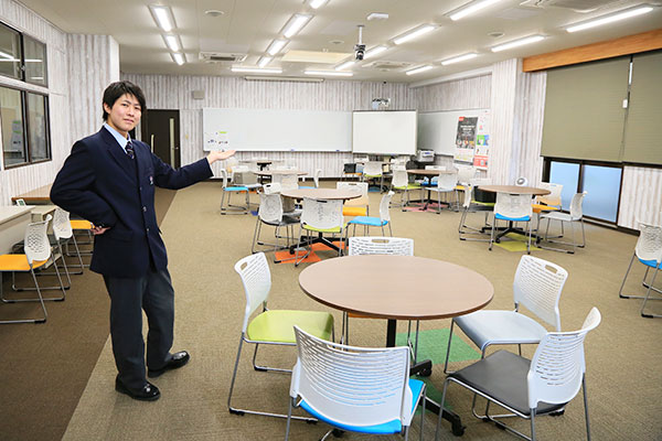 大野さんこの校舎は『E棟』といって、麗澤の母体である道徳科学専攻塾の開塾75周年を記念して造られました。完成は2012年で、設計したのは麗澤の卒業生です。併設の麗澤大学に新校舎を建てた時に、伐採された木材が校舎の一部に使用されています。