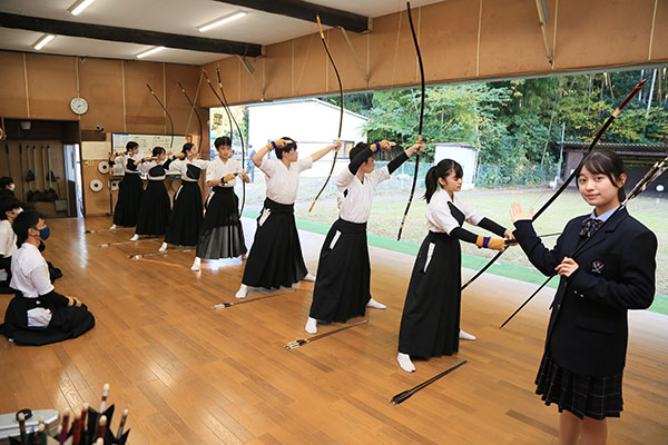 川瀨さん続いて弓道場をご紹介します。6~7人が余裕をもって弓を引けるスペースがあります。現在、併設の麗澤中学の弓道研究会の部員を合わせて60名がここで稽古に励んでいます。
