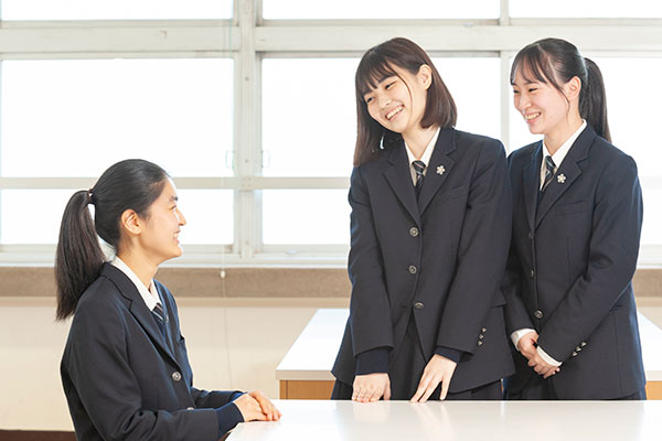 先生方の面倒見がすごく良いところです。進路についていろいろ聞くと、的確にアドバイスしてくださいます。私たちのことを知ってくれたうえで、大学や入試のことにも詳しく把握されているので、そうした情報をもとに、「がんばれ!」と背中を押してくださって頼りになります。私は大学入試で学校推薦型選抜をめざしているのですが、志望理由書の添削や面接の練習も熱心にしていただけました。先生と距離が近く、とても相談しやすいです。
