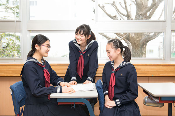 生徒と先生方の距離が近いことは私も感じています。それから社会に出てから必要なマナーや常識も先生方のおかげで身についたと思います。食事のときに箸の持ち方がまちがっていたり、音を立てたりすると、先生方が注意してくださいました。これから社会人として生活するうえで、必要なことだからそう言われるのだと思いました。また、中1の技術・家庭科の授業で、会席料理やフランス料理のマナーを学んだことも印象に残っています。