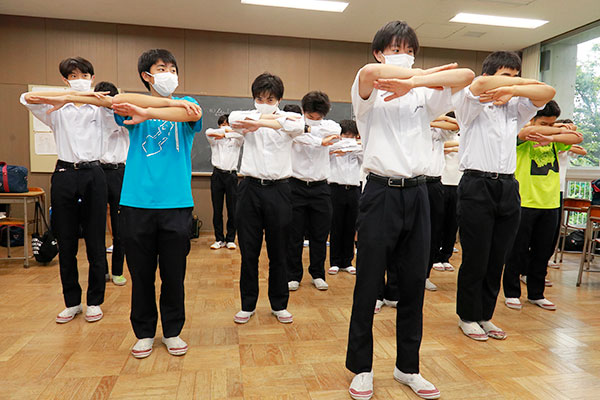 熱のこもった練習に励む応援団の生徒たち。試行錯誤しながら、より良いパフォーマンスを目指します。