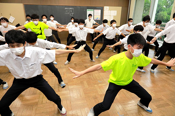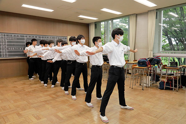 キレのある踊りに威勢のよい掛け声。体育祭を間近に控えた学内で、応援団のメンバーがパフォーマンスの練習にいそしんでいます。チームごとに一丸となって戦い、生徒同士の絆を深める体育祭。生徒の熱気が満ちあふれ、学校中を包み込んでいます。
