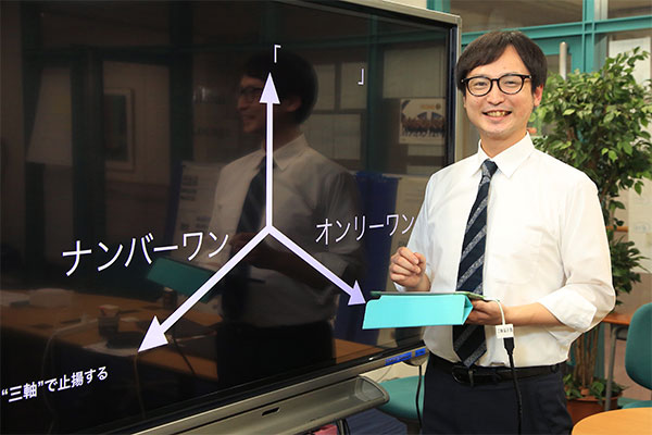 ある時の三軸は「ナンバーワン」と「オンリーワン」、そして生徒たち自身が考えるもう一つの軸。ある生徒はそこで「ラウンドワン」を軸に挙げました。「ナンバーワンとかオンリーワンを超えて、みんなでボーリングをすると楽しいよね」との言葉に教室はわき上がりました。