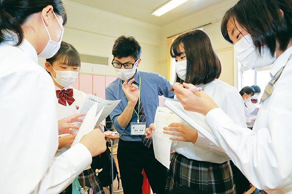 私は塾の講師を経て教員になりました。一斉型の授業に慣れていたので、本校の歴史を担当する先輩教員が実践する「学び合い」の授業を見学した時は驚きました。生徒は楽しそうで、意見を募ると生徒の手はどんどん挙がります。そして、「学び合い」をすることで、一人も置いていかない授業が実現できるんだと実感したのです。