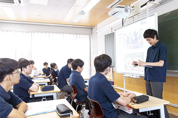 「こうした取り組みによって、文章力の向上に加え、生徒たちは人前で話すことにも次第に慣れていきます。本校では全生徒が『中学生の主張』『中学生弁論大会』に参加しますが、毎年上位入賞者を輩出していますし、大学や会社で『プレゼンがうまい』と褒められた卒業生の声もよく耳にします。