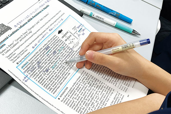 英語の学術論文にも挑戦。「キーワードさえ理解していれば、中高生でもかなり読めるようになります」(名取先生)(この記事は『私立中高進学通信2025年8月号』に掲載しました。)