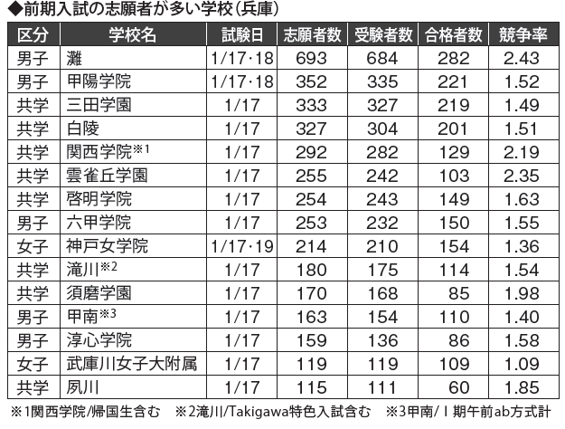 その他、神戸学院大学附属、神戸龍谷、蒼開、仁川学院が受験者数を伸ばしました。