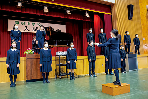 2021年11月20日、小学生と保護者を対象に、開明中学校の入試説明会が開催されました。完全予約制で参加人数は1組あたり合計2名まで、などの感染症対策が徹底されており、大切な子どもを預ける学校の真摯な姿勢に、保護者の安心した表情が見てとれました。
