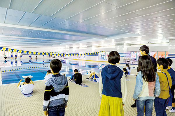 地下の温水プールは、初夏から秋にかけての体育の授業や、水泳部の練習で利用。