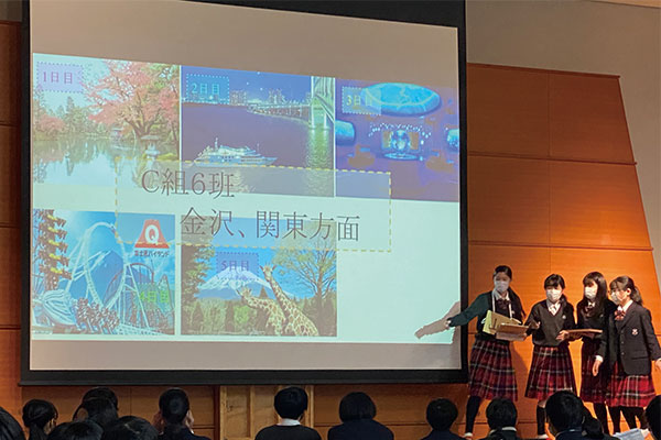 プレゼン大会は中2の3月に行い、修学旅行は中3の10月末です。毎年、プレゼン大会は盛り上がるのですが、彼女たちの学年は入学時からコロナ禍で行動面での制限が多かったためか、例年以上に盛り上がったと思います。