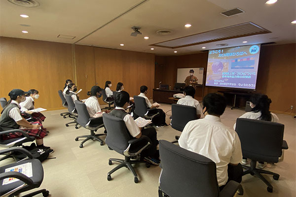 今年の中3は勉強合宿と大学見学、企業見学に行く『キャリアキャンプin東京』へ(写真右/JICA訪問)。