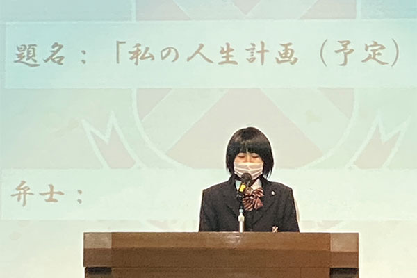 毎年、2月に開催している『弁論大会』。4人が中2のときのテーマは“将来の夢”。Kさんは「桃山の入学案内に載るのが夢です」と熱弁し、見事に“特別賞”を受賞。入学案内に載る夢もかないました。