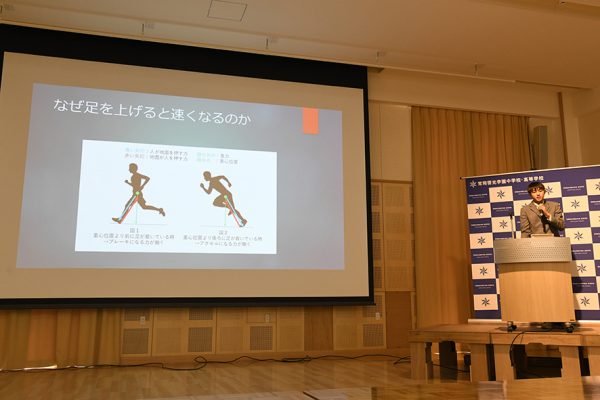 探究内容は多彩で、クモの巣を集めて強度を調べた虫好きの生徒や、早く走る方法を科学的に研究したラグビー部の生徒、信号機について調べた鉄道ファンの生徒など、「これぞ探究学習」と言わんばかりのテーマがずらり。調査活動においても主体的に行動しており、博物館に出向いたり、自分の身体を使ってサンプルデータを収集したり、製薬会社に直接連絡してインタビューを実施した生徒も。