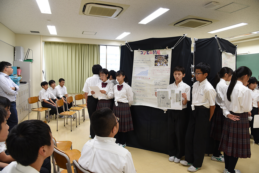 同校において探究の根底にある考え方は、中学も高校も変わりません。「自分たちの暮らしのなかで、課題に気づく」ことです。また、気づくだけで終わらせず、何をすればいいのか解決策を立案し、どうやって実現させるのかという行動にまでつなげる力を養います。