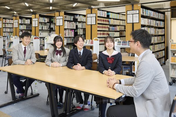 在校生がいきいきと活躍する姿や、整った設備など、学校のリアルな雰囲気を直接感じられるのがオープンキャンパス(OC)です。「生徒も先生も楽しそうで親切」、京都橘のOCに参加した人たちからは、そんな声が多く聞かれます。同校では、来校者を迎えるにあたり、どんなことを大切にしているのでしょうか。OCが入学の決め手になったという生徒たちと、入試広報部長の海川孝之先生にお話をうかがいました。