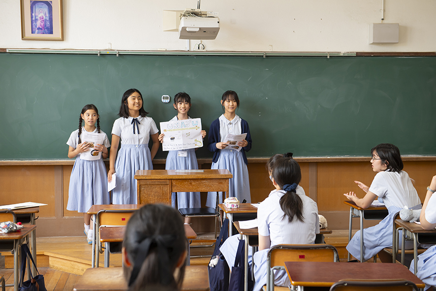 「人前で話すことが得意ではないので、プレゼンが不安でしたが、発表が終わった後にみんなが拍手してくれて自信が持てました。英語は苦手でしたが意識が変わり、もっと外国の人と触れ合いたいと思うようになりました」(中1・YMさん)