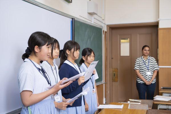 「語学力そのものも大事ですが、まずはコミュニケーションへの意欲や主体性を育てたいですね。本校では文法を踏まえながら、できるだけ“実際の場面に近い”状況を取り入れた活動的な授業づくりを進め、課外授業でワークショップの機会を何十年も前から設けています。その内容は長い歴史の中で少しずつ変化し、発展してきました。そして“英語を話す人のうち、第2言語として話す人が8割を超える今の時代にふさわしい体験をさせたい”という願いから取り組みの幅を広げ、現在はネイティブ講師を招いたワークショップ型の形式へと進化しています」 と、経緯を話すのは英語科・高橋良子先生。