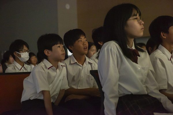 2025年9月11日~13日の3日間にわたり全学年・全クラス対抗の『演劇コンクール』が開催され、初日は中1、翌日は中2、最終日は中3が作品発表を行いました。すべての作品を中学全生徒と先生が鑑賞し、【最優秀賞】【優秀賞】【奨励賞】【生徒優秀賞】を決定します。学年が上がるほど有利なのでは、と考えてしまいますが、芸術というのは経験や知識がものをいう分野ではありません。初々しい瞬発力や表現力が観客の心をつかむこともあります。過去には、中1の作品が【最優秀賞】を勝ち取ることもあり、それこそがこの行事の醍醐味と言っても過言ではありません。