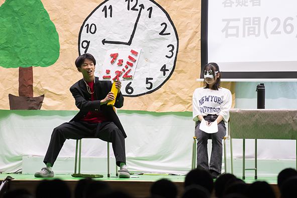 「オチをどうするのかに苦労しました。脚本が完成したのは本番2日前。全員で通し稽古をしたのは2回でしたが、最高の賞を受賞できて本当にうれしいです!(」 3年3組/S・Sさん)