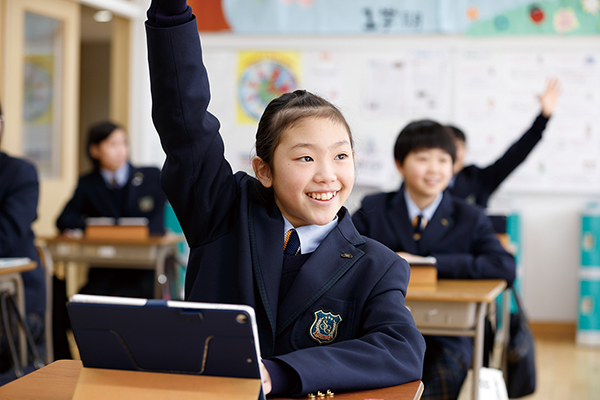 授業は先生が一方的に話すのではなく、生徒参加型で進んでいくのが特徴です。特に中学は少人数クラスなので先生との距離が近くて質問しやすいですし、英語と数学は習熟度別授業で、一人ひとりの理解度を把握しながら進行してくださるので安心感がありました。また、一人1台配布されるタブレット端末を活用して、クラスメートの解答を共有しながら解き方を議論し合う機会もあり、一人で勉強するよりも意欲的に学習に取り組むことができました。